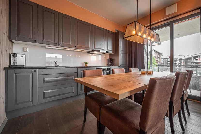 The Lodge Trysil A202, Lys og moderne lejlighed på 2. sal. Kombineret opholdsstue med TV og sovesofa. køkkenafdeling: 3 soveværelser, 2 brusere, 2 WC. badekar. 1 P-plads i garage til 1 bil (max højde 2,10m). Skiopbevaring i garage. Adgang til elbilopladere med type 2 stik mod betaling.