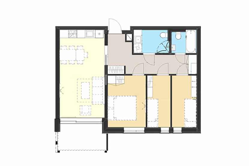 Soveværelse 1: 1 dobbeltseng 150 cm bred. Soveværelse 2: 1 køjeseng 75 cm bred. Soveværelse 3: 1 køjeseng 75 cm bred.