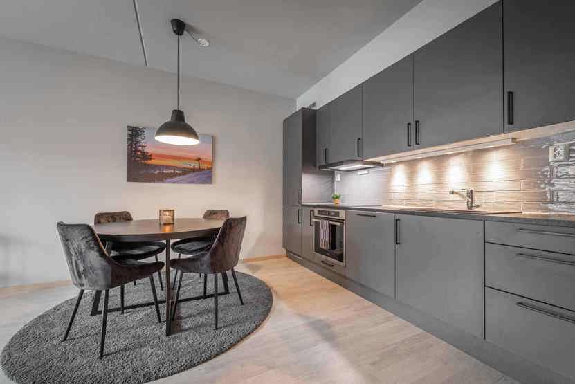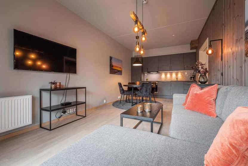 Lys og moderne lejlighed på 2. sal. Kombineret opholdsstue med TV og sovesofa. køkkenafdeling: 3 soveværelser, 2 brusere, 2 WC. badekar. 1 P-plads i garage til 1 bil (max højde 2,10m). Skiopbevaring i garage. Afhængigt af sneforholdene kan afstanden til lift/bakke variere, skilift 150 meter, langrendsløjper 300 meter.