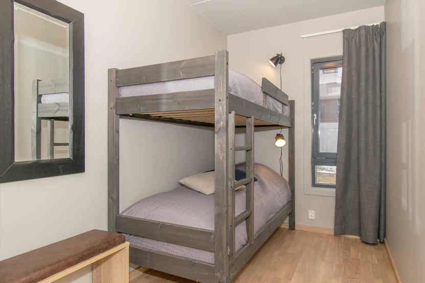 Soveværelse 1: 1 dobbeltseng 160 cm bred. Soveværelse 2: 1 køjeseng 80 cm bred. Soveværelse 3: 1 køjeseng 80 cm bred.