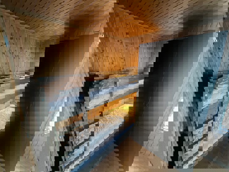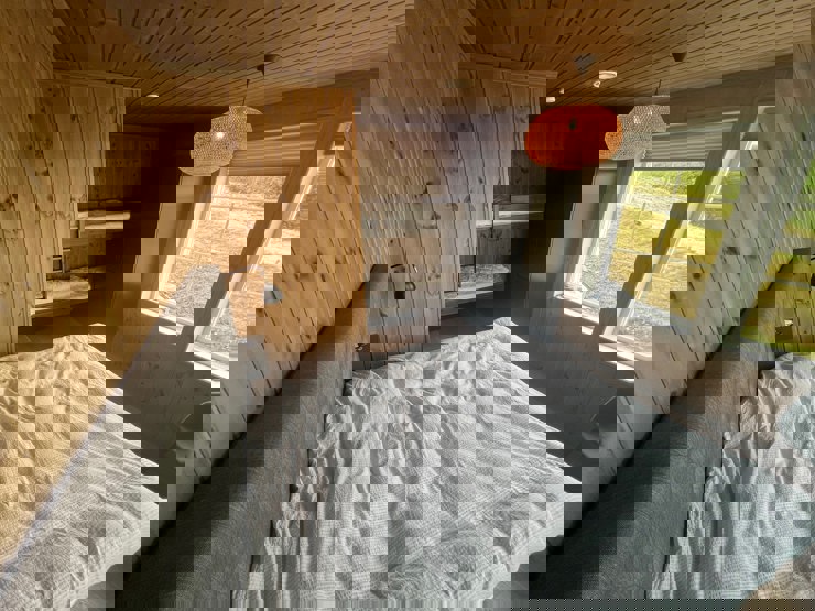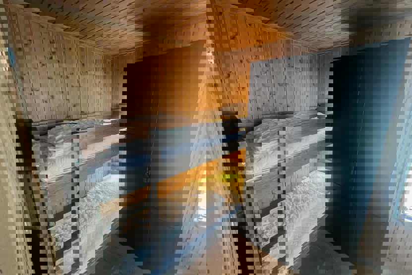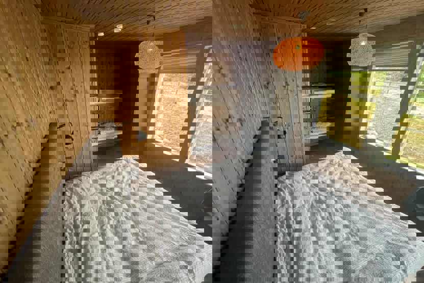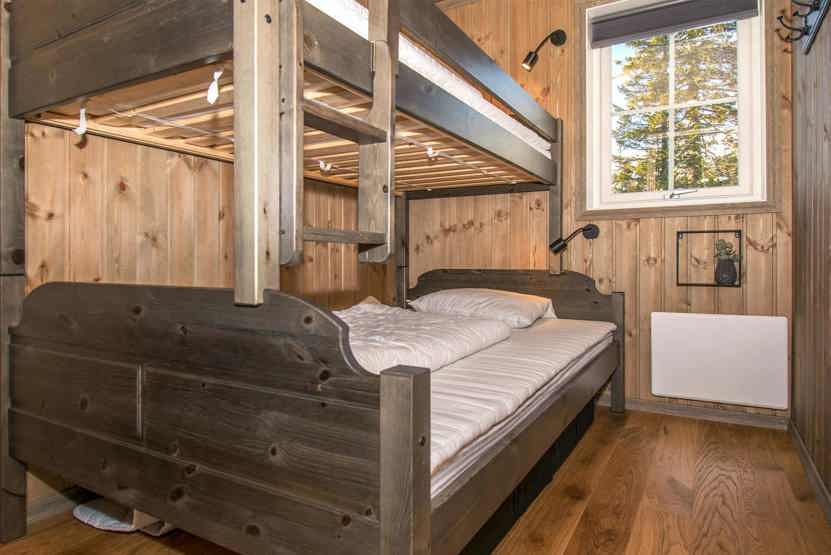 Soveværelse 1: 1 dobbeltseng 180 cm bred. Soveværelse 2: 1 køjeseng med 150 cm bred underkøje og 90 cm bred overkøje. Soveværelse 3: 1 køjeseng med 120 cm bred underkøje og 90 cm bred overkøje. Soveværelse 4: 1 dobbeltseng 180 cm bred.