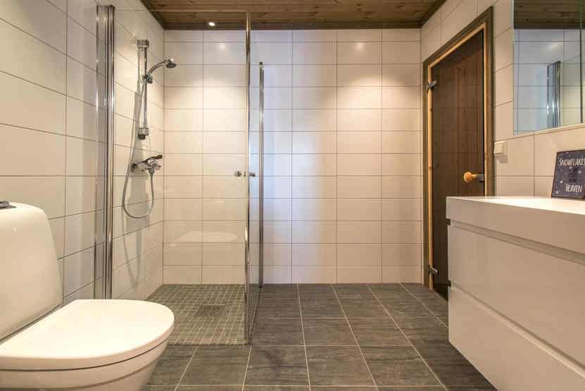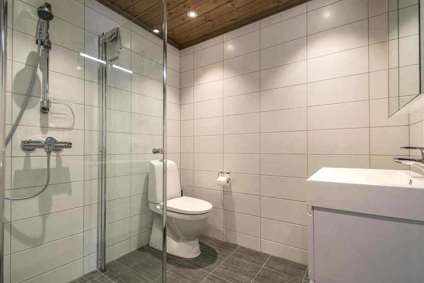 Bad 1: Bruser, WC og sauna. Bad 2 med bruser og WC.