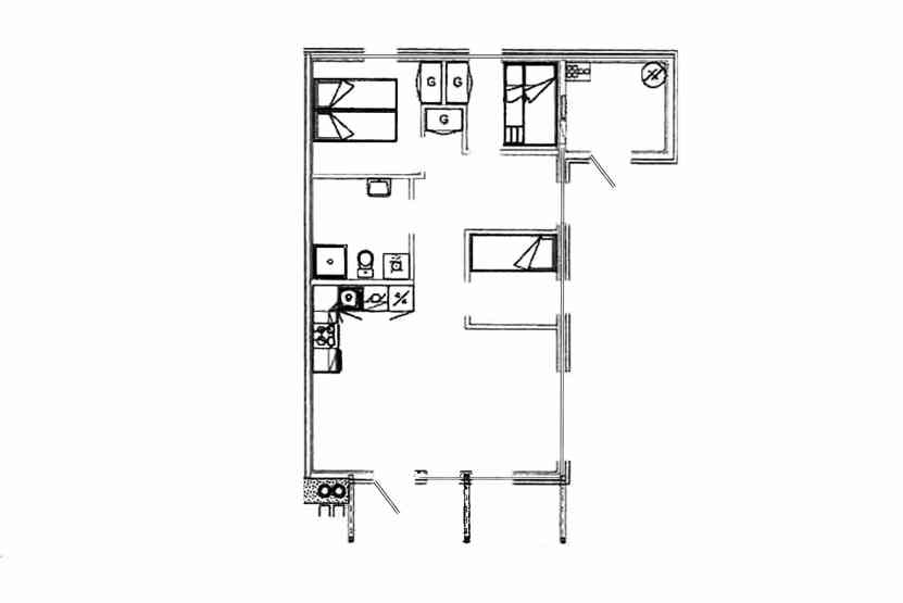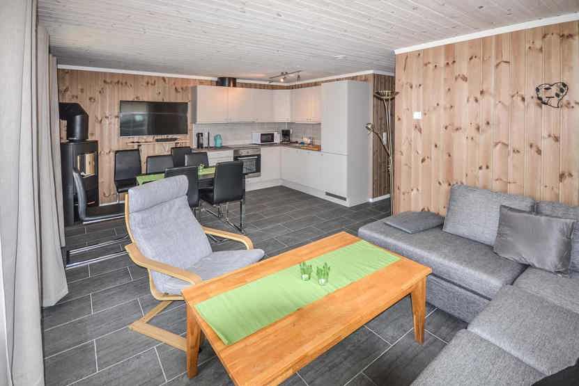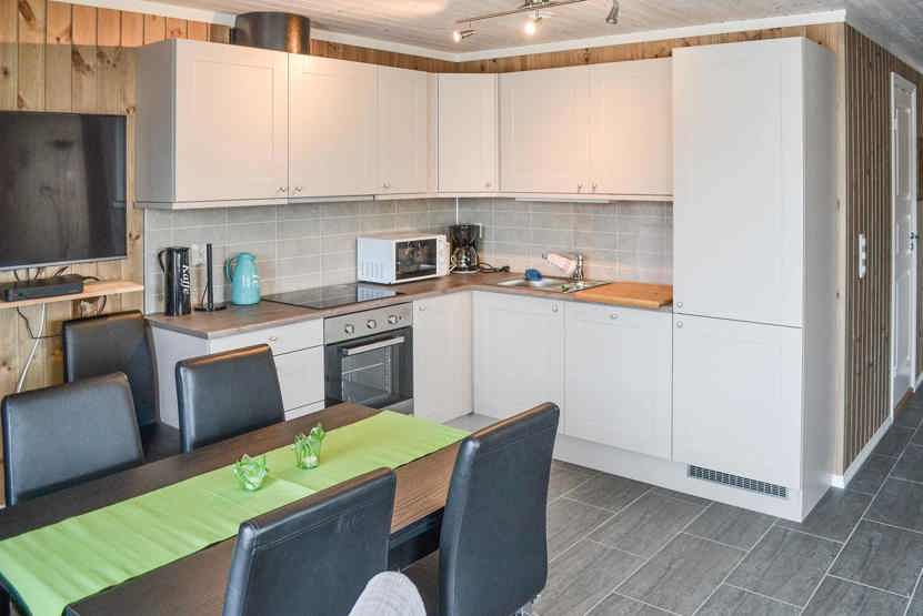 6 personers veludstyret lejlighed, 56 m². Køkkenafdeling og opholdsstue med brændeovn, TV. 3 soveværelser. 1 bruser, 1 WC, vaskemaskine.