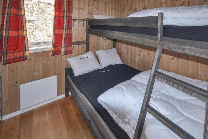 Soveværelse 1: 1 dobbeltseng. Soveværelse 2: 1 køjeseng. Soveværelse 3: 1 køjeseng med 120 cm bred underkøje.