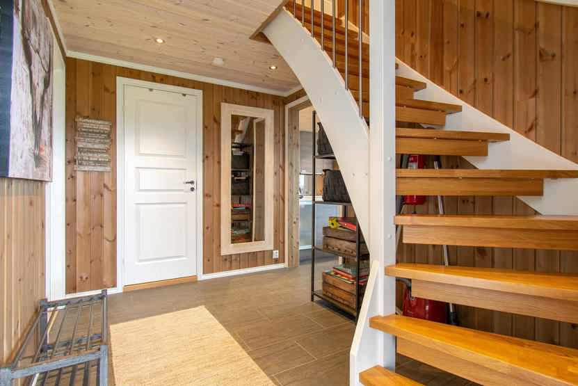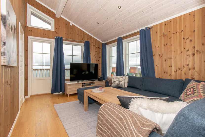 Ekstra info: Opholdsstue med pejsindsats, stue i overetagen med sofa og TV .