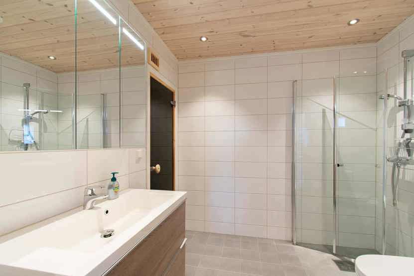 Bad 1: Bruser, WC og sauna. Bad 2: Bruser og WC.