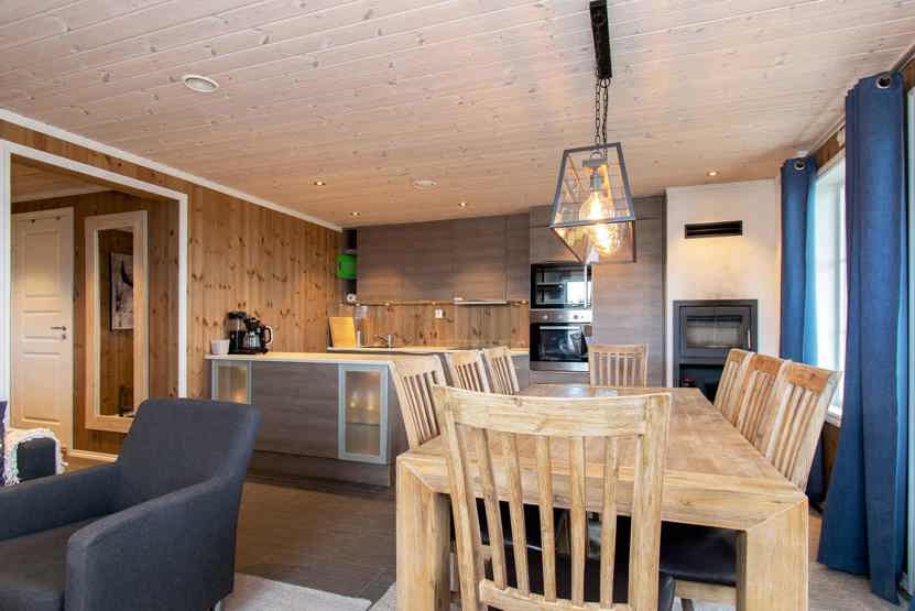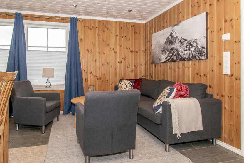 10 personers veludstyret lejlighed, 120 m². Perfekt for flere familier der ønsker at bo sammen. Køkkenafdeling og opholdsstue med brændeovn, TV. Mindre stue på overetagen med sofa og TV. 4 soveværelser. 2 brusere, 2 WC, 1 sauna. Adgang til elbilopladere med type 2 stik mod betaling.