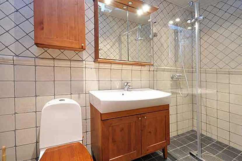 Bad 1: Bruser og WC. Bad 2: Bruser, WC, sauna og boblebad.