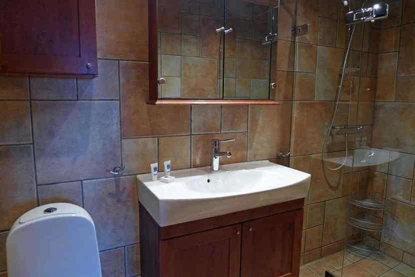 Bad 1: Bruser og WC. Bad 2: Bruser, WC, sauna og boblebad.