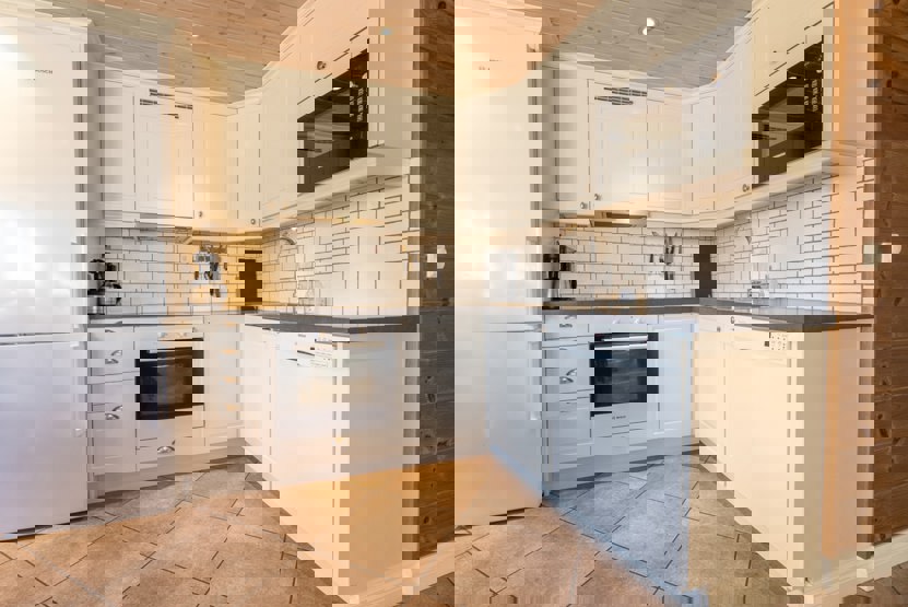 Køkken: Enheden har komfur med ovn, opvaskemaskine, mikrobølgeovn, køleskab, fryser.