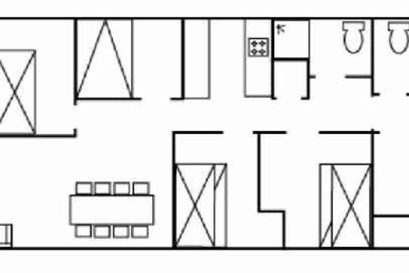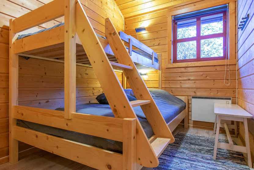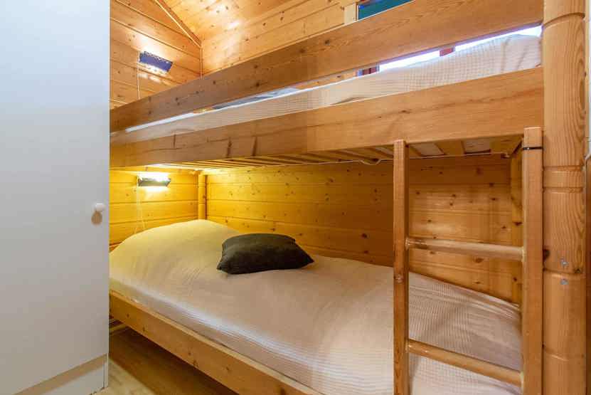Soveværelse 1: 1 dobbeltseng. Soveværelse 2: 1 køjeseng med 120 cm bred underkøje. Soveværelse 3: 1 køjeseng. Soveværelse 4: 1 køjeseng.