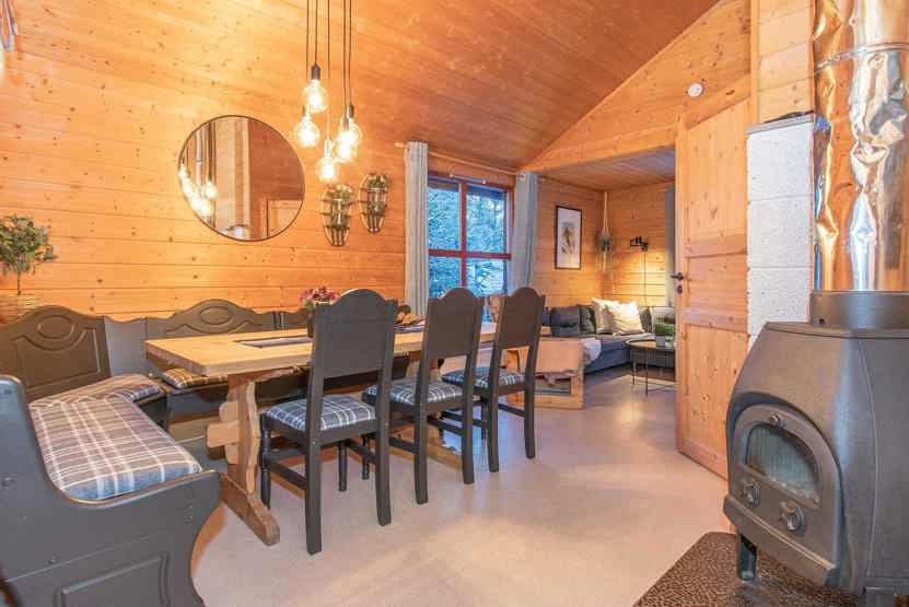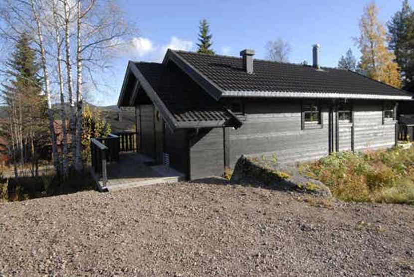 Hytte med 8 sengepladser, Køkkenafdeling med spiseplads. Opholdsstue med pejseovn og TV, 4 soveværelser. 1 bruser, 2 WC, 1 sauna.