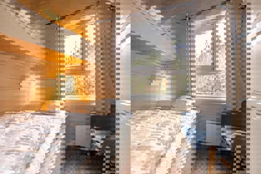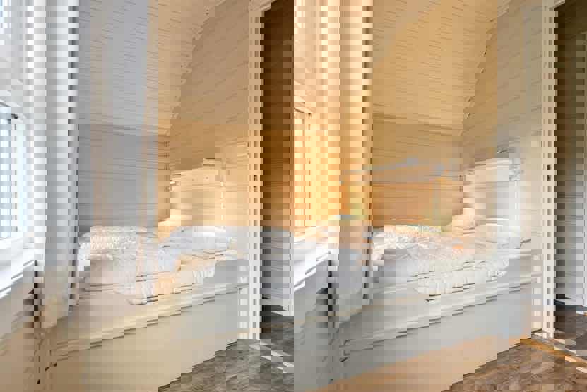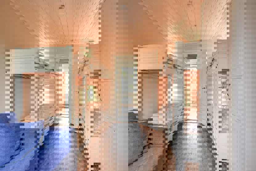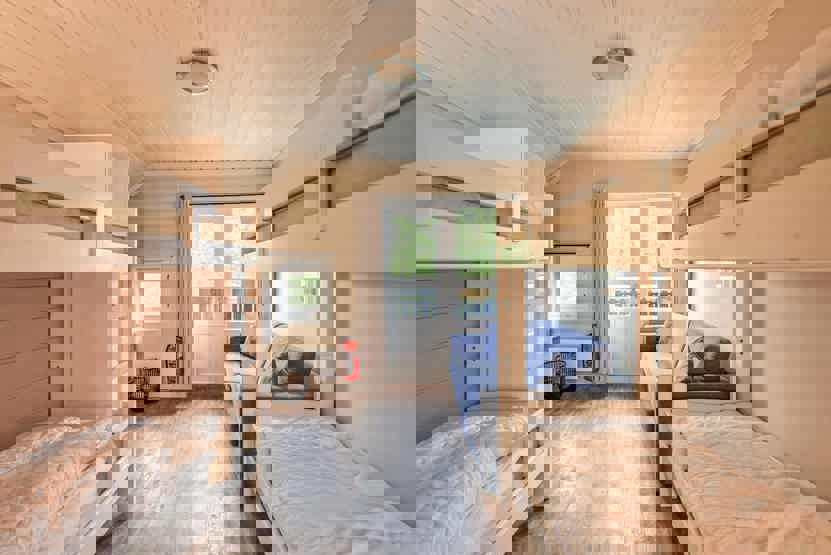 Soveværelse 1: 1 dobbeltseng. Soveværelse 2: 1 køjeseng med 140 cm bred underkøje og 75 cm bred overkøje. Soveværelse 3: 2 køjesenge.