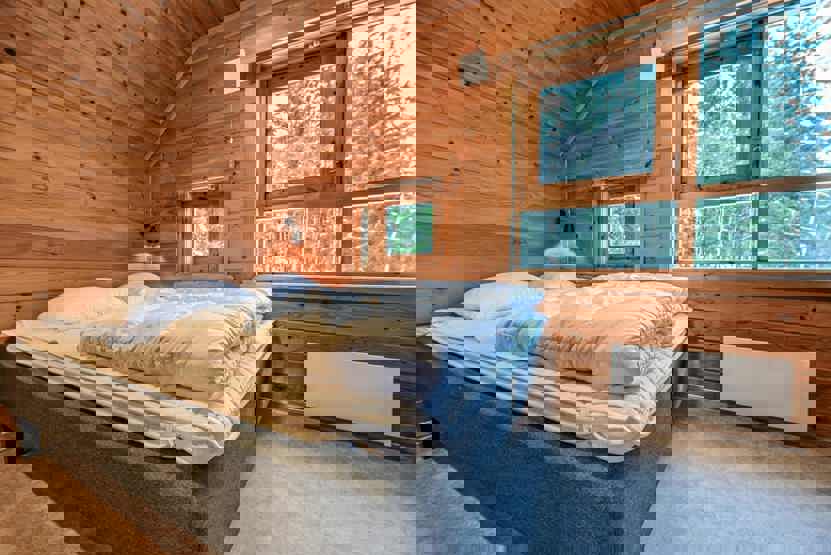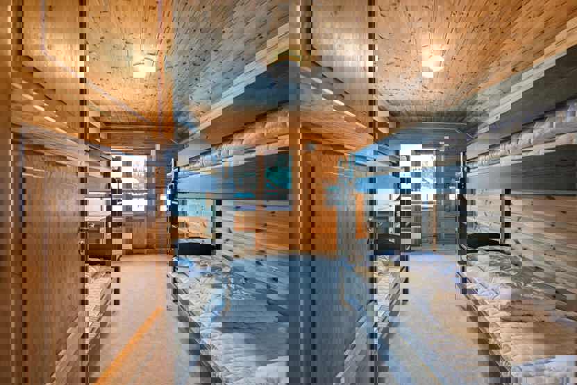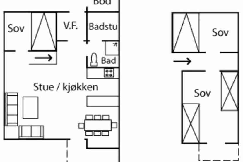 Soveværelse 1: 1 dobbeltseng. Soveværelse 2: 1 dobbeltseng. Soveværelse 3: 2 køjesenge.