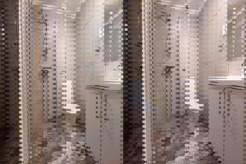 Badeværelser: Bad 1: Bruser, WC og sauna.