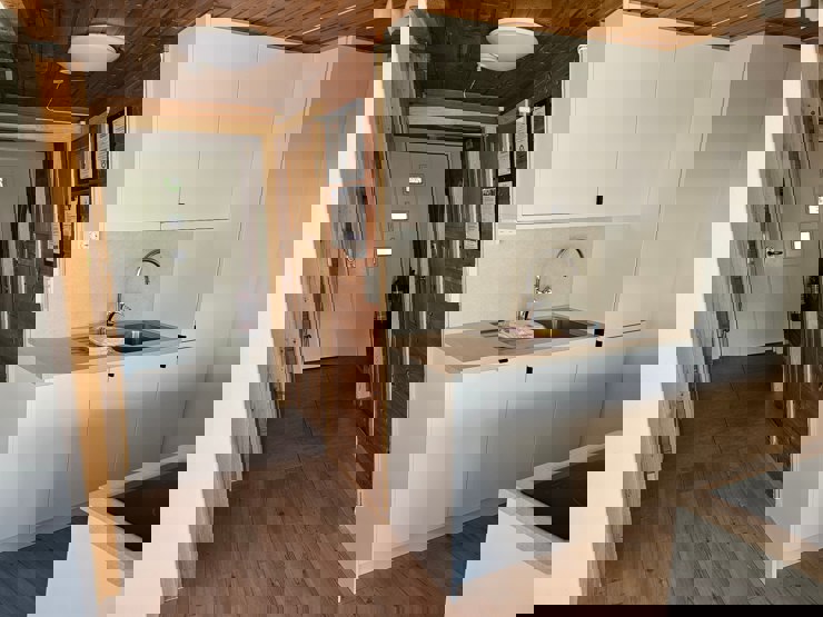 Køkken: Enheden har komfur med ovn, opvaskemaskine, mikrobølgeovn, køleskab, fryser.