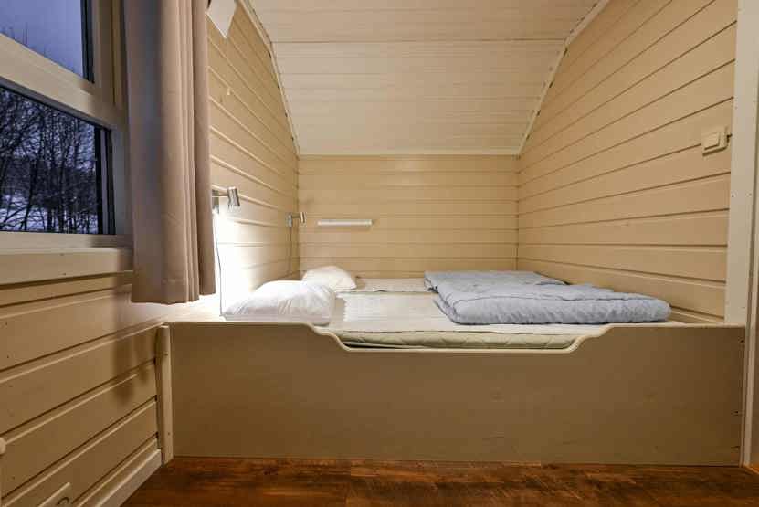 Soveværelse 1: 1 dobbeltseng 180 cm bred. Soveværelse 2: 1 køjeseng med 140 cm bred underkøje og 90 cm bred overkøje. Soveværelse 3: 2 køjesenge 80 cm bred.