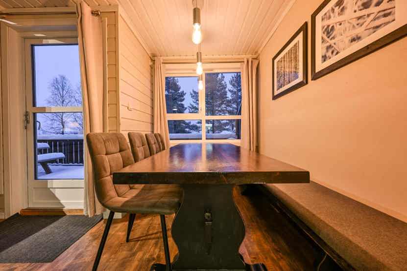 Lejlighed i 2 etager med 8 sengepladser, Køkkenafdeling med spiseplads. Opholdsstue med pejseovn og TV, 3 soveværelser. 1 bruser, 2 WC, 1 sauna.
