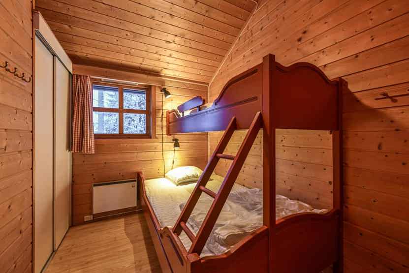 Dobbelthytte med 6 sengepladser, 56 kvm, 3 soverum. Køkkenafdeling med spiseplads. Opholdsstue med pejseovn og TV. 1 bruser, 1 WC. Tørreskab, skiopbevaring.