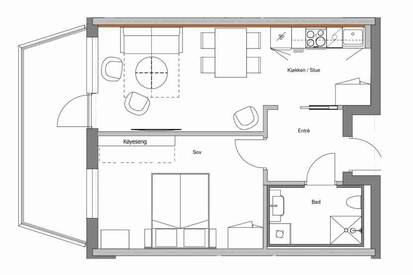 Trysil Alpine Lodge A104, hyggelig lejlighed med god komfort. Beliggende med ski in / ski ved Trysil Turistsenter og med Radisson Blu som nærmeste nabo. Her er let adgang til liften og børneområdet og kort afstand til alle aktiviteter og faciliteter som gør det nemt at være en aktiv familie i Trysil. Lejlighed på 1. sal 2+2 sengepladser, fuldt udstyret køkkenafdeling, opholdsstue med TV og sovesofa. 1 soveværelse, 1 bruser, 1 WC. Adgang til skirum. 1 garageplads, øvrig parkering mod gebyr (begrænset antal pladser), Adgang til elbilopladere med type 2 stik mod betaling. Elevator findes i huset.