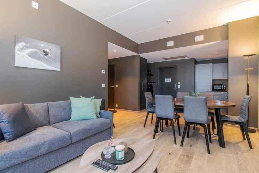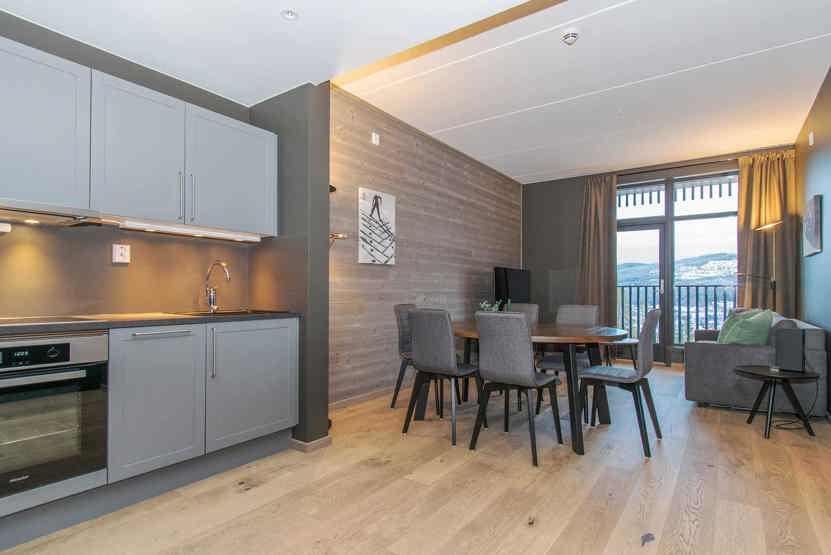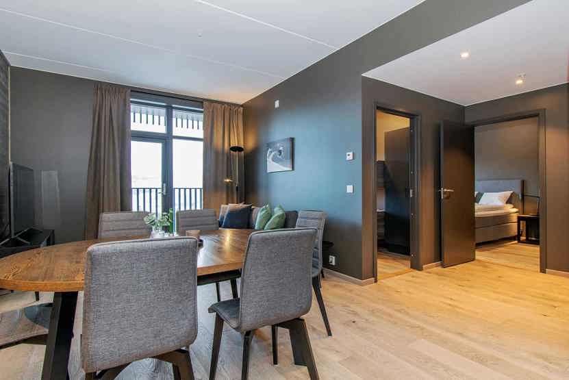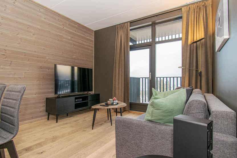 Ekstra info: Opholdsstue med TV, sovesofa. Skiopbevaring, 1 garageplads, øvrig parkering mod gebyr (begrænset antal pladser), elevator findes i huset.