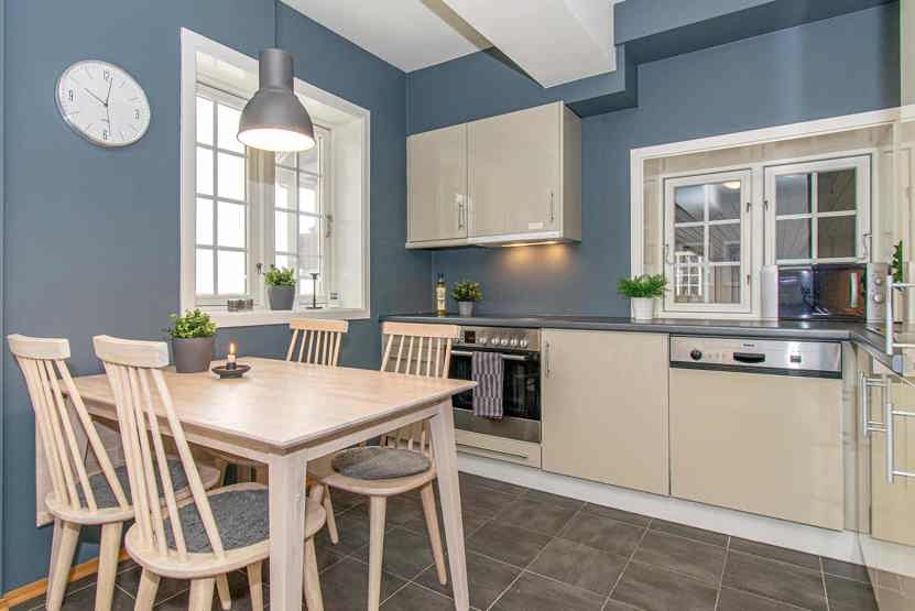Enheden har komfur med ovn, opvaskemaskine, mikrobølgeovn, køleskab, fryser.