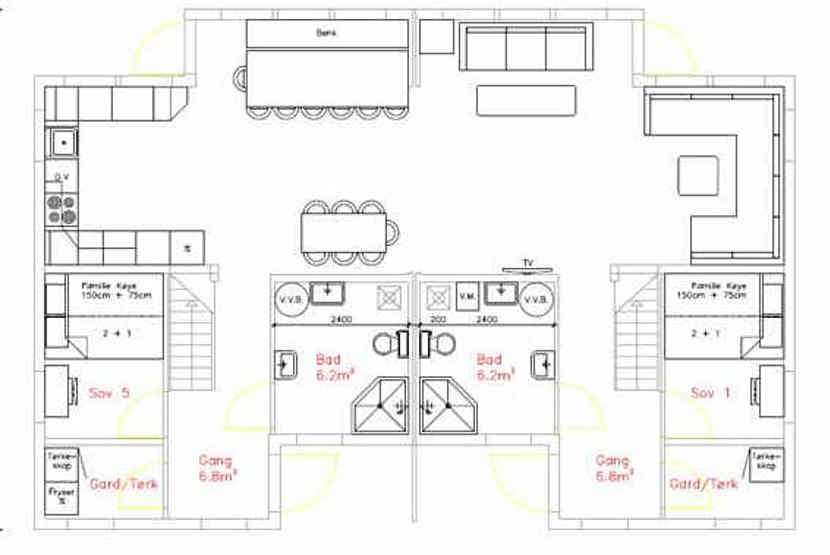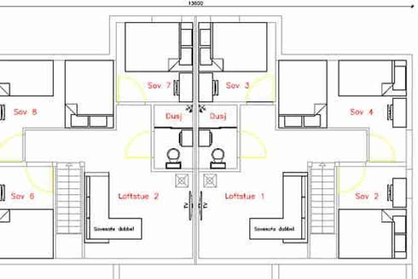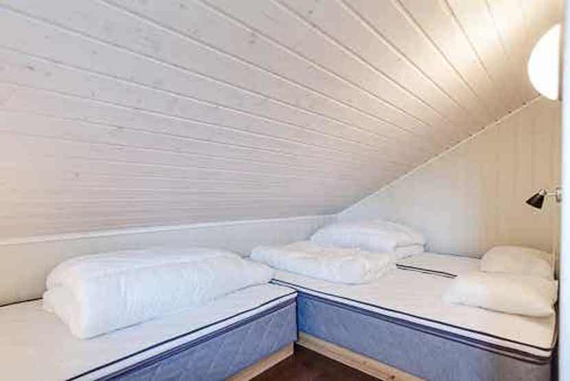 Soveværelse-1= 1 dobbeltseng. Soveværelse-2= 1 dobbeltseng. Soveværelse-3= 1 dobbeltseng. Soveværelse-4= 1 dobbeltseng. Soveværelse-5= 1 køjeseng med 150 cm bred underkøje. Soveværelse-6= 1 køjeseng med 150 cm bred underkøje. Soveværelse-7= 1 dobbeltseng, 1 enkeltseng. Soveværelse-8= 1 dobbeltseng, 1 enkeltseng.