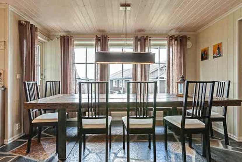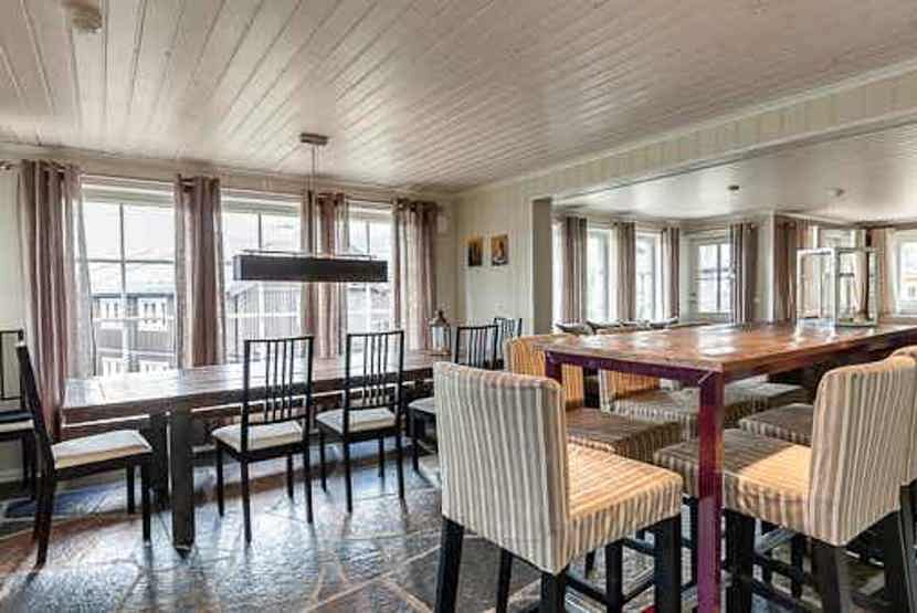 Storhytte med 18 sengepladser, 172 m², Opholdsstue med brændeovn, TV og køkkenafdeling, mindre TV-stue på 1.sal. 8 soveværelser, 4 brusere, 4 WC, sauna i egen hytte. Vaskemaskine, tørreskab.
