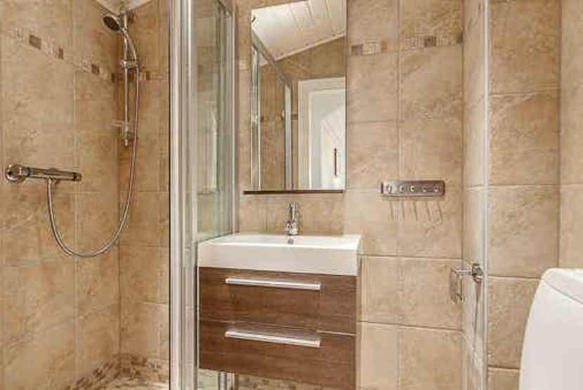 Bad 1 med bruser og WC. Bad 2 med bruser og WC. Bad 3 med bruser og WC. Bad 4 med bruser og WC.
