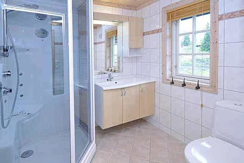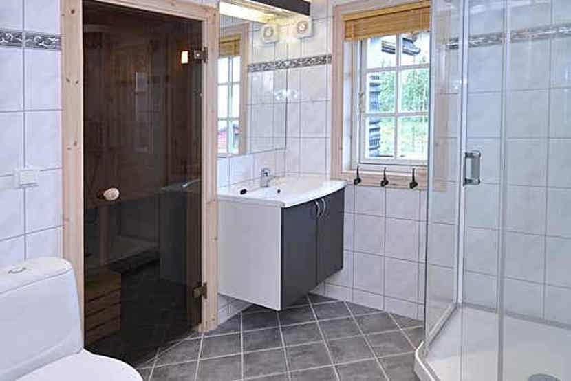 Bad 1 med bruser og WC. Bad 2 med bruser, WC og sauna.