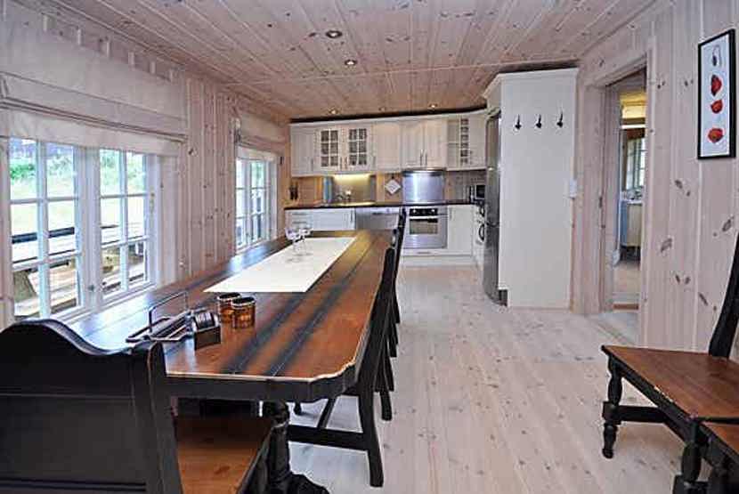 Hytte med 9+1 sengepladser, 87 m², Opholdsstue med brændeovn, TV og køkkenafdeling, 4 soveværelser, 2 brusere, 2 WC, 1 sauna, tørrerum