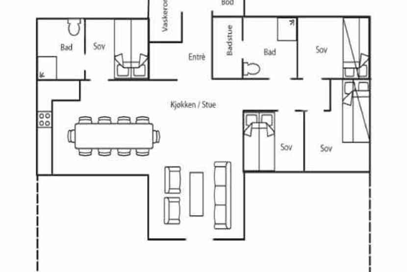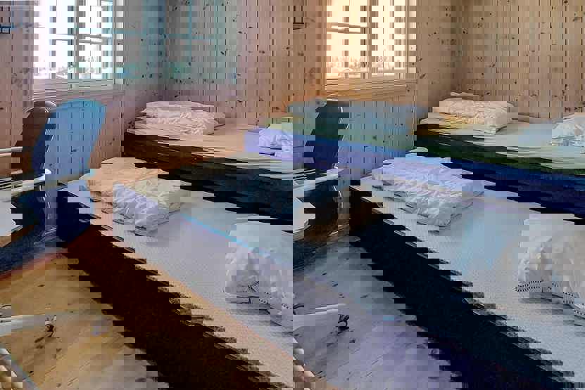 Soveværelse-1= 1 dobbeltseng. Soveværelse-2= 1 dobbeltseng. Soveværelse-3= 1 køjeseng med 150 cm bred underkøje. Soveværelse-4= 1 køjeseng med 150 cm bred underkøje.