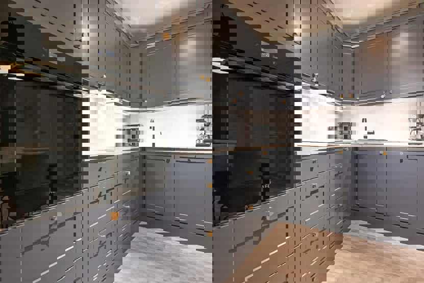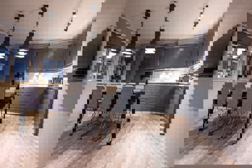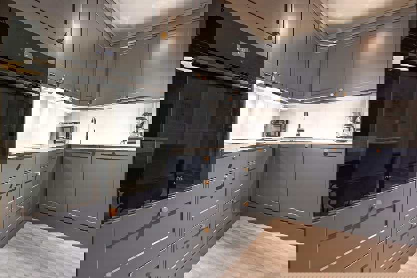 Køkken: Enheden har komfur med ovn, opvaskemaskine, køleskab, fryser.