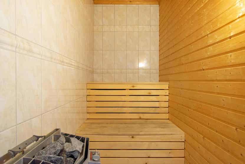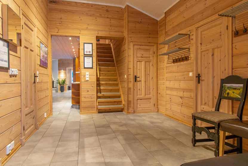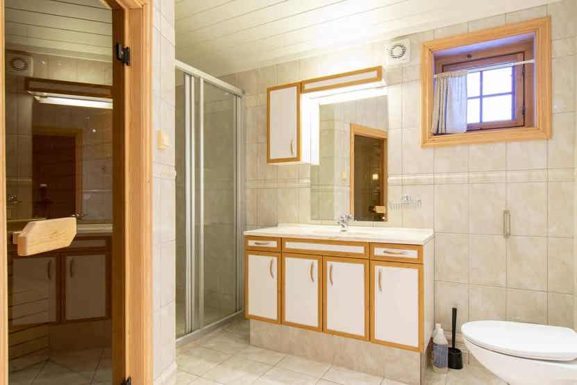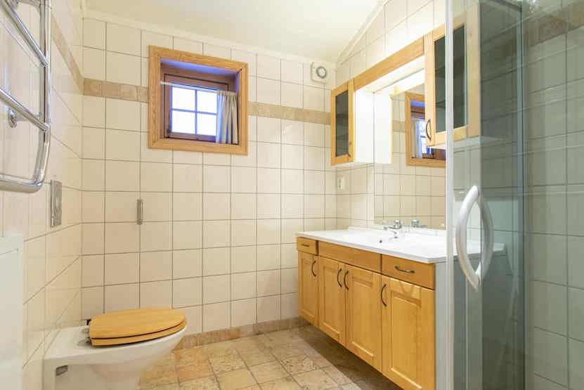 Bad 1: med bruser, WC og sauna. Bad 2: med bruser og WC.