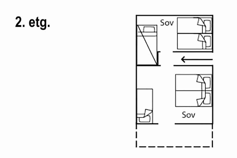 Soveværelse 1: 1 dobbeltseng, 1 køjeseng. Soveværelse 2: 1 dobbeltseng, 1 enkeltseng. Soveværelse 3: 1 køjeseng med 150 cm bred underkøje. Soveværelse 4: 1 køjeseng med 150 cm bred underkøje. Soveværelse 5: 1 køjeseng.