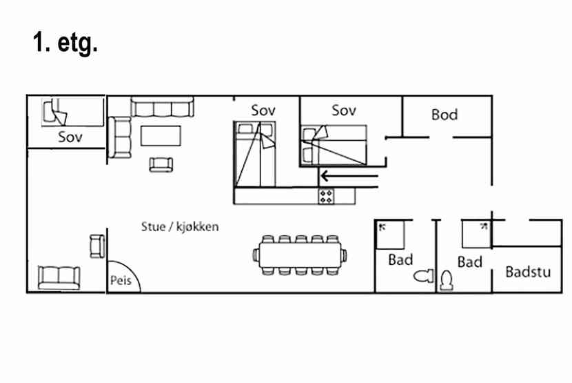 14 pers. hyggelig hytte fordelt på 156 m² Perfekt for flere familier der ønsker at bo sammen.