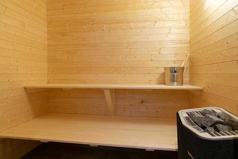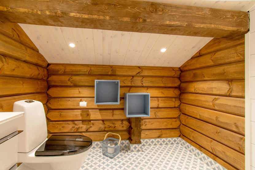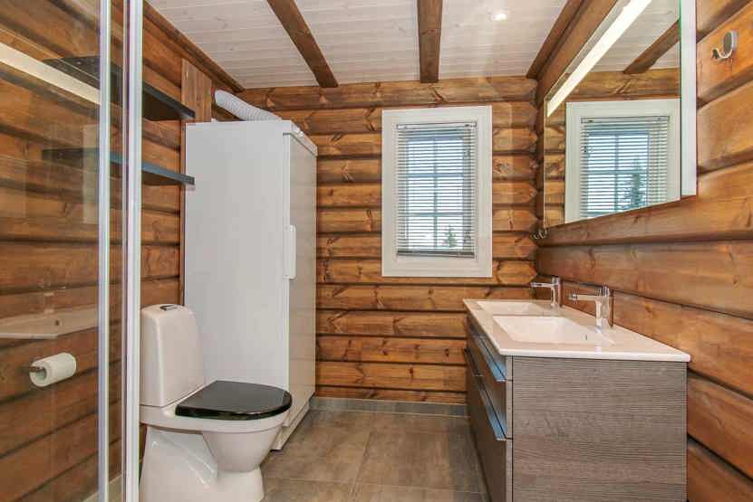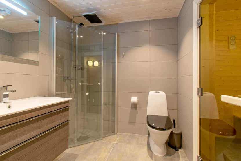 Bad 1 med bruser, WC og sauna. Bad 2 med bruser og WC. Bad 3 med bruser og WC.