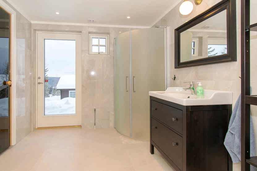 Bad 1: Bruser, WC og sauna. Bad 2: Bruser og WC.