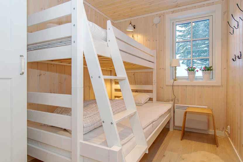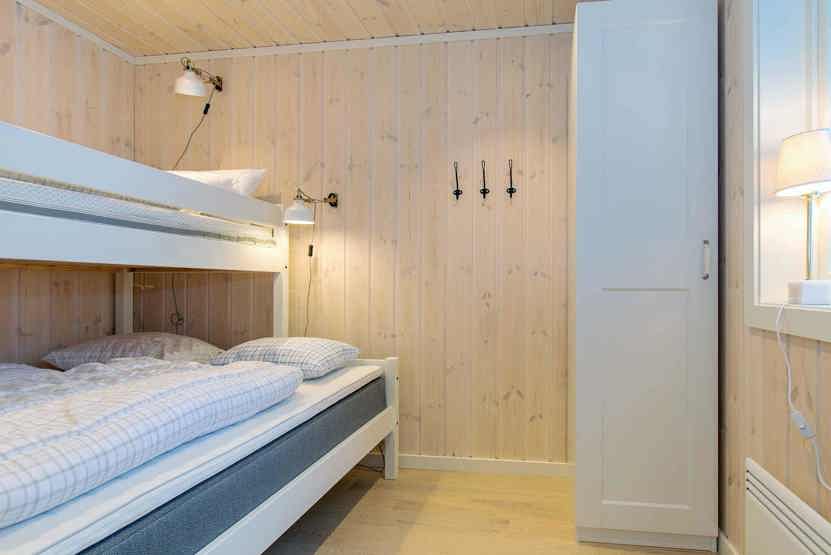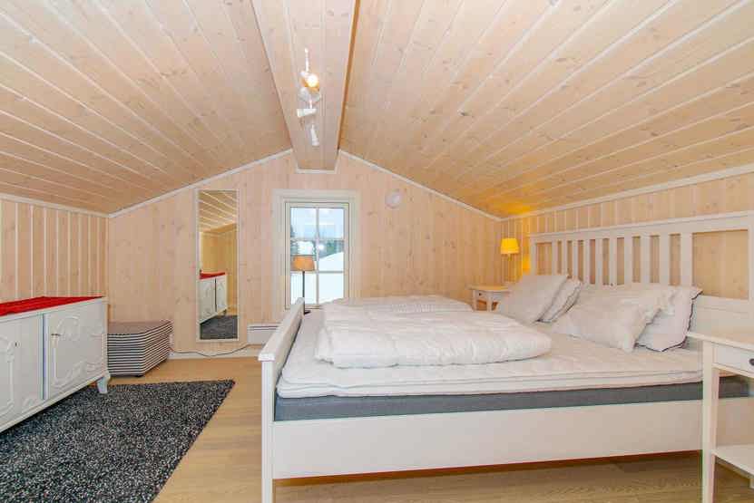 Soveværelse 1: 1 dobbeltseng 180 cm bred. Soveværelse 3: 1 dobbeltseng 180 cm bred. Soveværelse 3: 1 køjeseng med 150 cm bred underkøje og 90 cm bred overkøje. Soveværelse 4: 1 køjeseng med 120 cm bred underkøje og 90 cm bred overkøje. Soveværelse 5: 3 enkeltsenge.