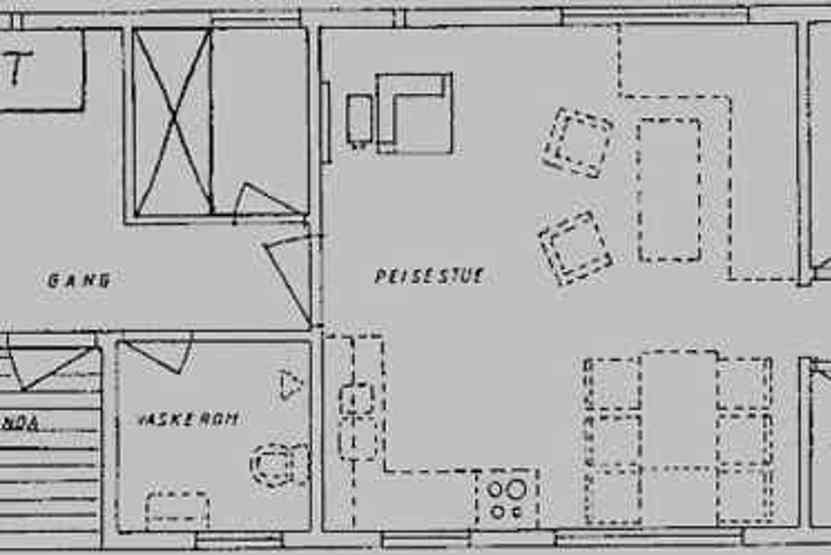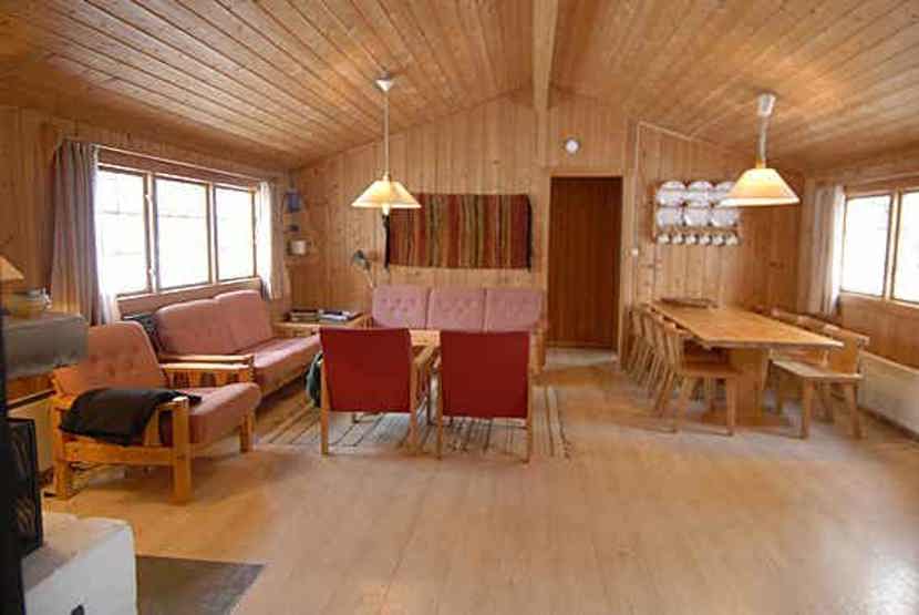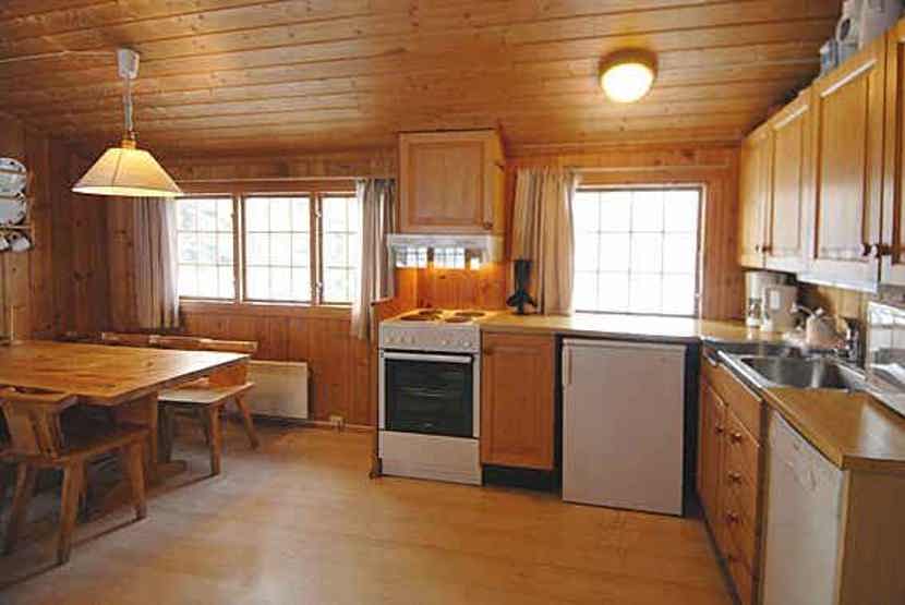 Hytte 6+2 personer, 60 m². Opholdsstue med pejs og fuldt udstyret køkkenafdeling, 3 soveværelser.1 bruser, 1 WC,