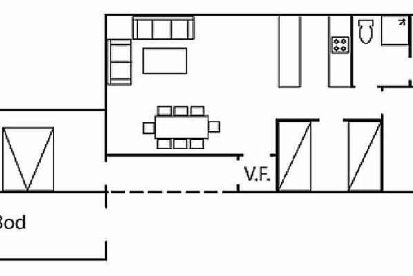 6 sengepladser. Opholdsstue med pejs, TV og fuldt udstyret køkkenafdeling, 3 soveværelser, 1 bruser, 1 WC, 1 sauna.