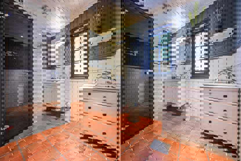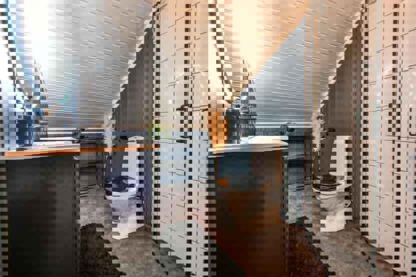 Bad 1: Bruser, WC og sauna. Bad 2: Bruser og WC.
