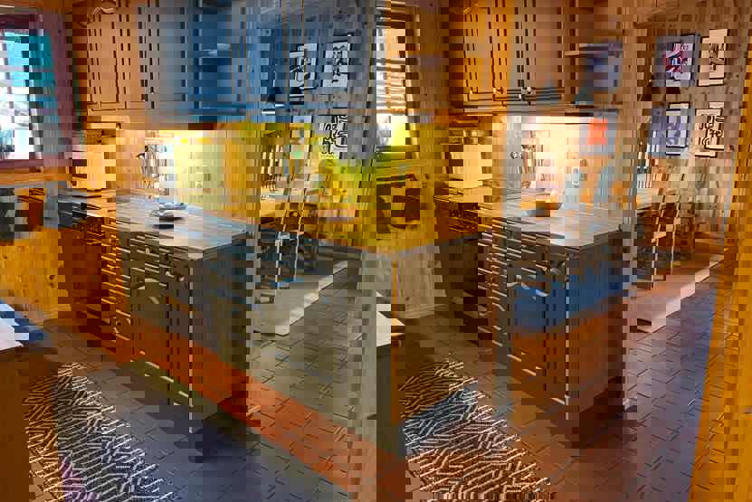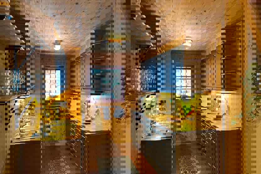 Køkken: Enheden har komfur med ovn, køleskab, fryser, opvaskemaskine, mikrobølgeovn.