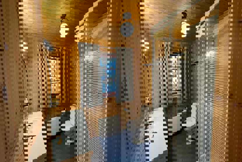 Bad 1: Bruser, WC og sauna. Bad 2: Bruser og WC. Bad 3: Bruser og WC.