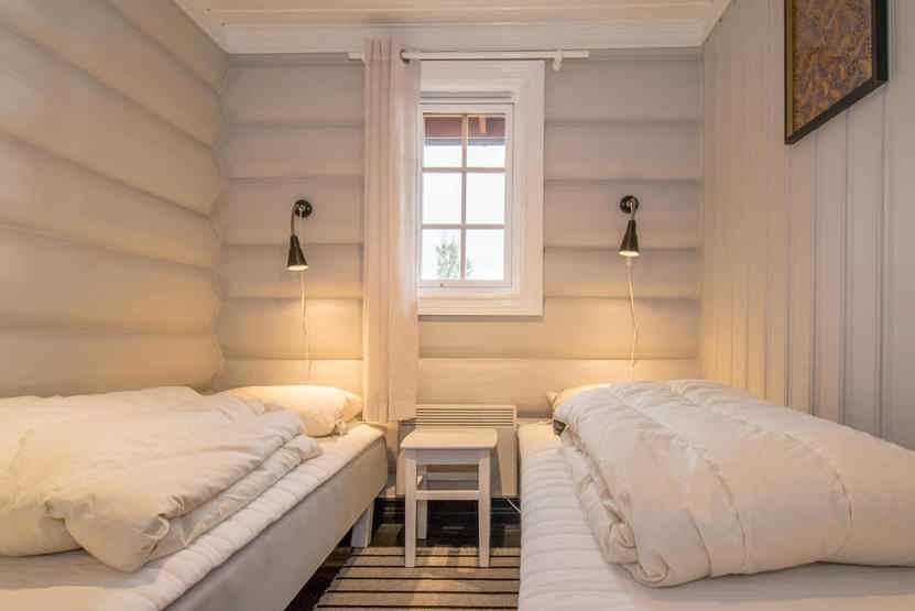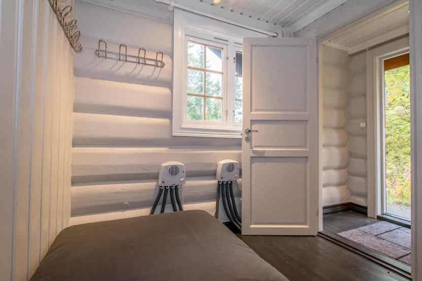 Hytten har: Køkkenafdeling med spiseborde til 14 personer. Opholdsstue med pejseovn, TV 5 soveværelser, 2 brusere, 2 WC, 1 sauna. Vaskemaskine. Tørrerum