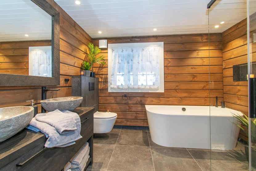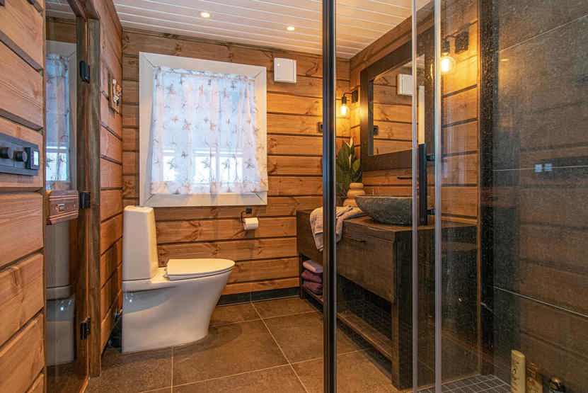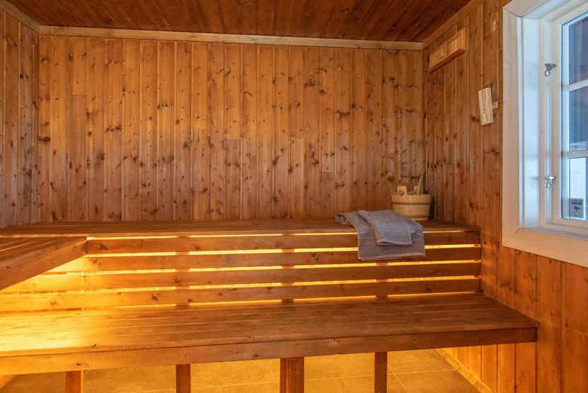 Bad 1: bruser og WC og sauna. Bad 2: bruser, WC og badekar.