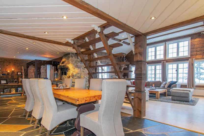 Rummelig 8-10 personers hytte ,192 m² fordelt på 2 etager. Stor opholdsstue med pejs og fuldt udstyret køkkenafdeling, I tillæg mindre TV-stue på 1. sal. 4 soveværelser, 2 brusere, 2 WC, 1 sauna. Vaskemaskine, Stor terrasse med udsigt og grillhytte.