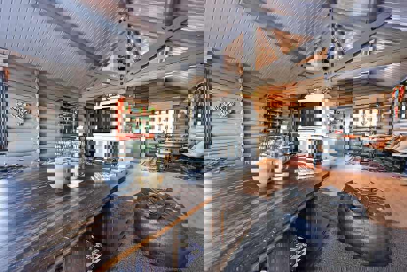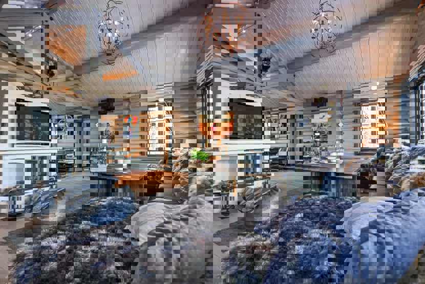 12 sengs hyggelig hytte fordelt på 155 kvm. 6 soveværelser. Perfekt for flere familier der ønsker at bo sammen.