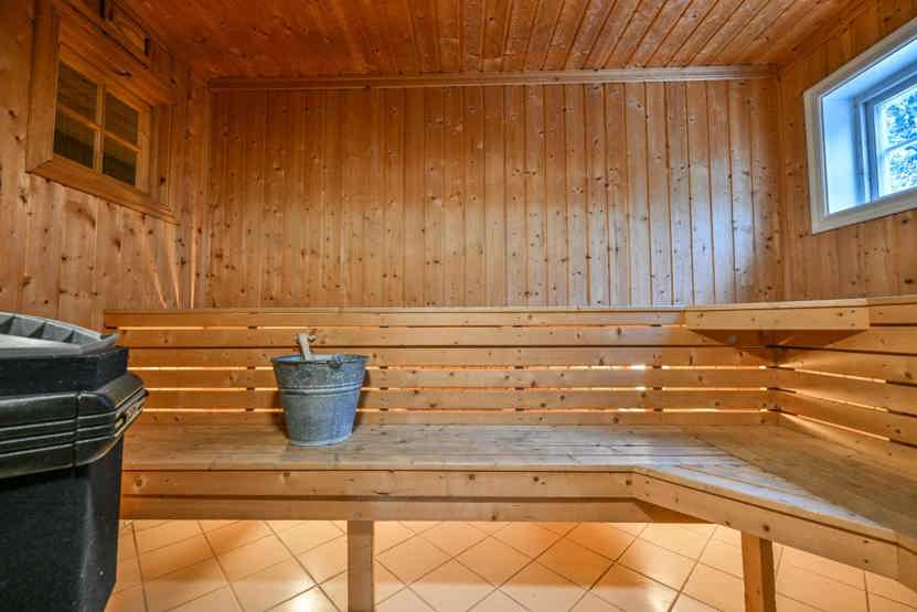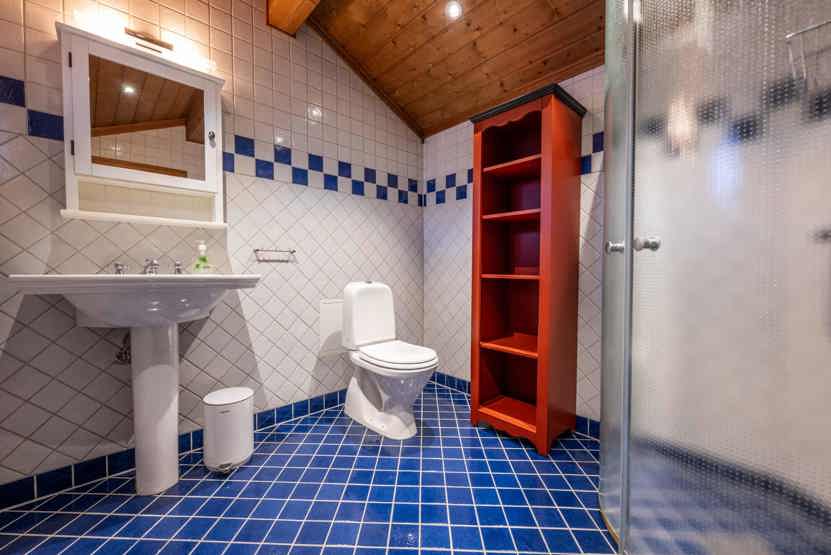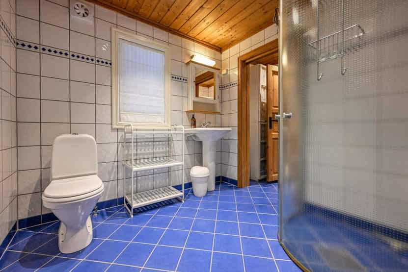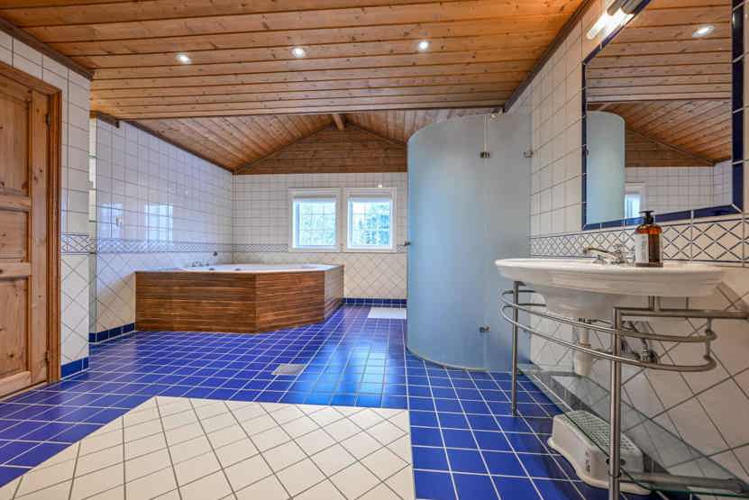 Bad 1: Bruser, WC, sauna og boblebad. Bad 2: Bruser og WC. Bad 3: Bruser og WC. Bad 4: WC.