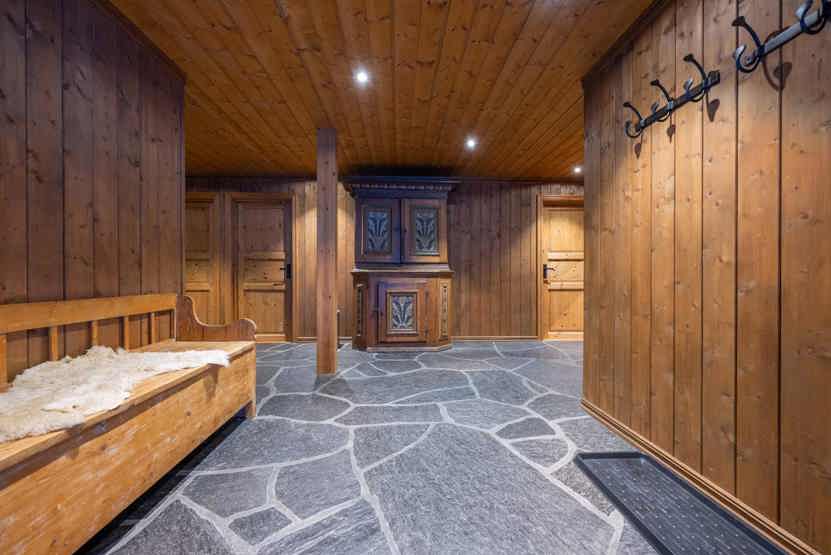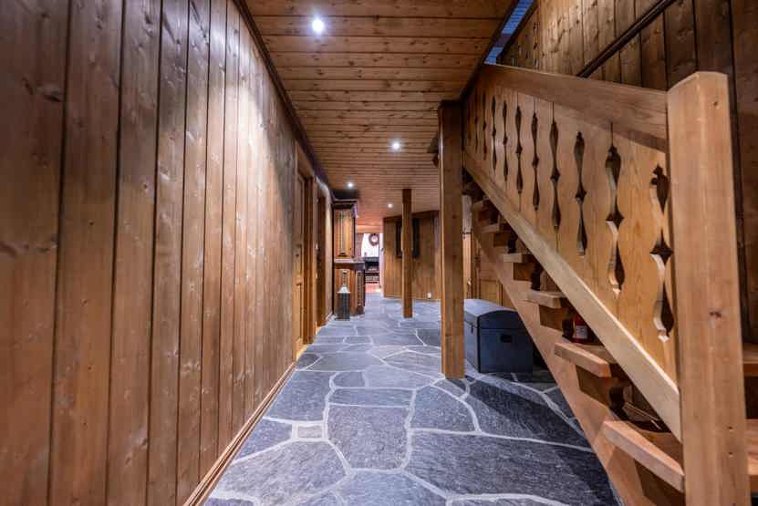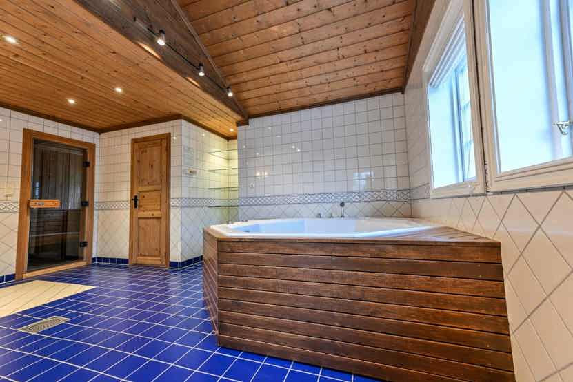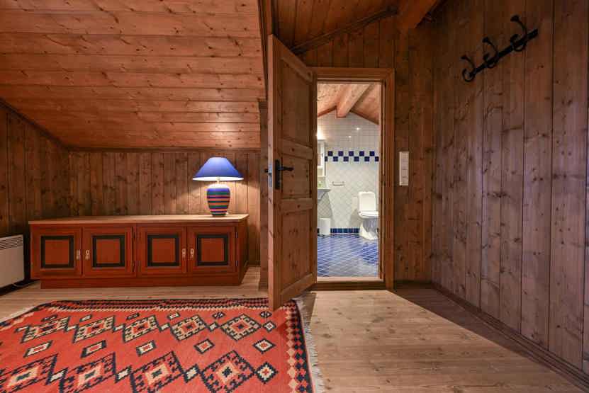 hytte med hems i 2 etager på 320 m², Stort køkken / allrum med spiseplads. Opholdsstue med pejs og TV. I tillæg stue med sofa og TV. 6 soveværelser + 2 hemse. 1 barneseng. 3 brusere, 4 WC. boblebad, Stor Terrasse.